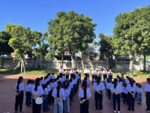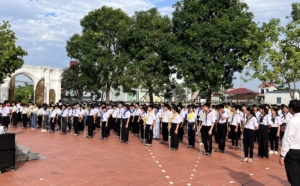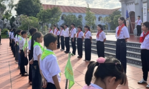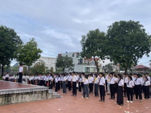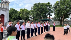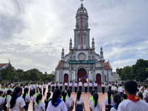 Hình ảnh đoàn TNTT Tôma Thiện tham dự nghi thức chào cờ đầu tháng với chủ đề: “Làm việc tông đồ”, 6/7/2025