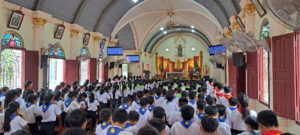 Sau cơn bão số 3 – Wipha … đoàn TNTT Tôma Thiện tiếp tục chương trình thăng tiến với chủ đề: : “Em học với Giêsu”, 23/7/2025