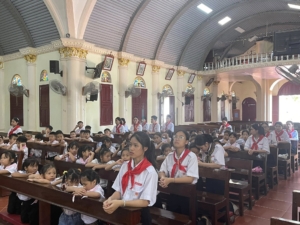Một vài hình ảnh giờ học giáo lý và tham dự thánh lễ của các em thiếu nhi xứ đoàn Tôma Thiện – Giáo xứ Hoài Lai, 29/6/2025