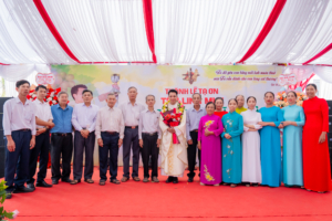 Sau thánh lễ, quý cha, ông cố và thân nhân của cha mới Giuse cùng với hội đồng giáo xứ chia sẻ niềm vui trong bữa tiệc mừng.