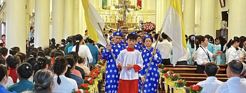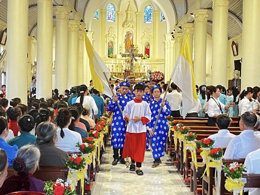 Hình ảnh cộng đoàn giáo họ Tuy Lai cung nghinh Thánh Thể và thánh lễ tạ ơn kết thúc ngày chầu lượt thay mặt giáo phận lúc 16h30, 12/10/2025