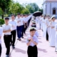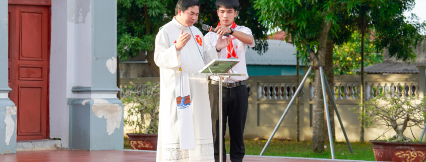 Tất cả 90 sa mạc sinh đã khởi đầu hành trình với nghi thức lên đường và chào cờ khai mạc hành trình sa mạc tại nhà thờ xứ Hoài Lai.