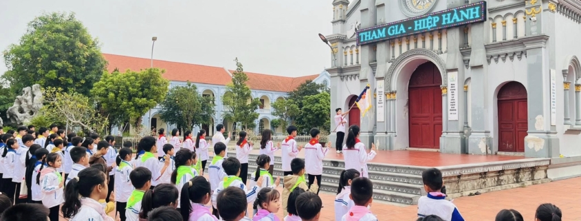 Cập nhật vài hình ảnh đoàn TNTT Tôma Thiện tham dự nghi thức chào cờ đầu tháng với chủ đề làm việc tông đồ, 02/11/2025