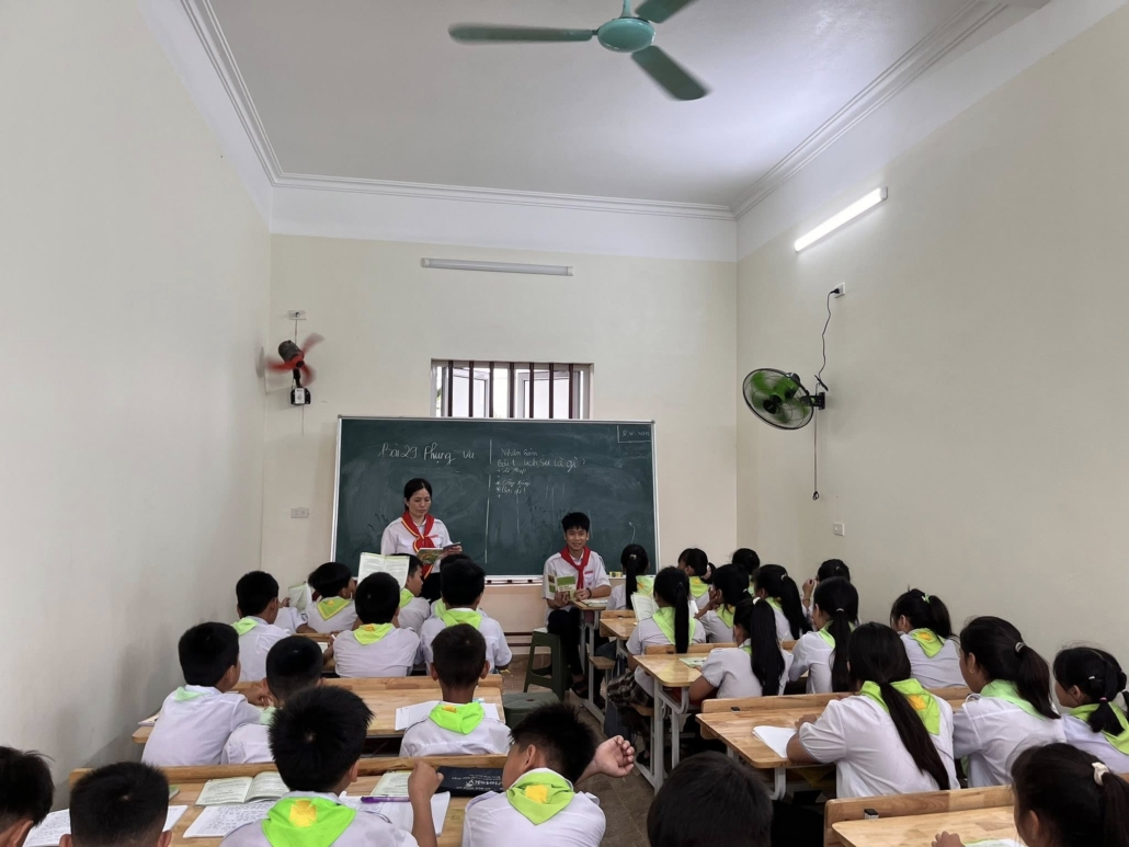 Hình ảnh giờ học giáo lý trong chương trình thăng tiến TNTT tại xứ đoàn Tôma Thiện – Giáo xứ Hoài Lai với chủ đề: “Em Học Với Giêsu”, 13/6/2025